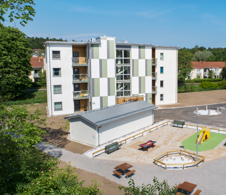 Sävebo byggde två nya fyravåningshus med lägenheter mitt i centrala Sävsjö. Varje hus består av tolv lägenheter vardera.
